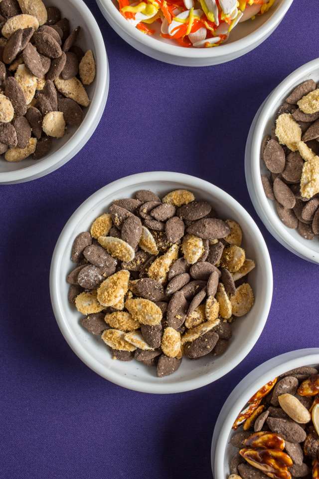Enter: these sweet and salty pumpkin seeds, roasted until crispy and then dressed up like all our Halloween favorites. Just think of it as a nutritious snack in a candy costume.