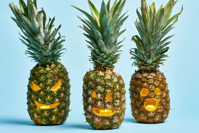 While pumpkins are the fruit of record for Halloween decorating, they're not the only ones capable of holding a funny face! With the all-things-tropical trend still on the rise, a new player is in town: the pineapple.