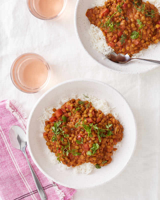 Now that fall has settled in and a chill has returned to the air, it's the perfect time for stocking up on hearty stews and curries to take you through the season. Meaty brown lentils star as the base of this wholesome and comforting vegan curry. It's kissed with warm, sweet spices like garam masala and turmeric, laced with fire-roasted tomatoes, and finished with a can of creamy coconut milk for just a touch of richness.